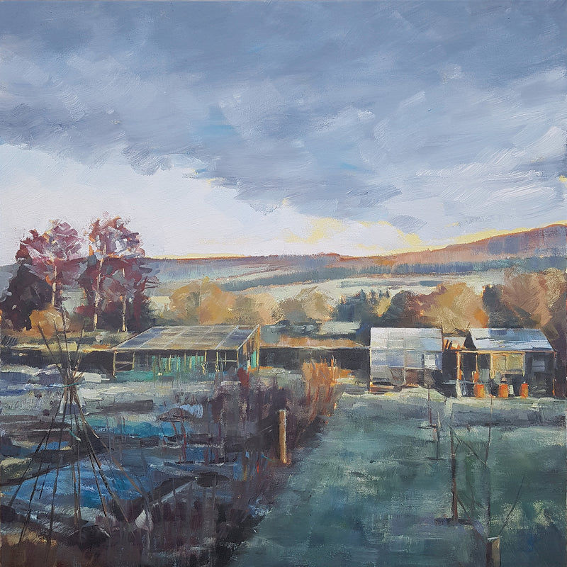 Early Sunshine Across the Fields, 2022, oil on panel, 45 x 45 cm